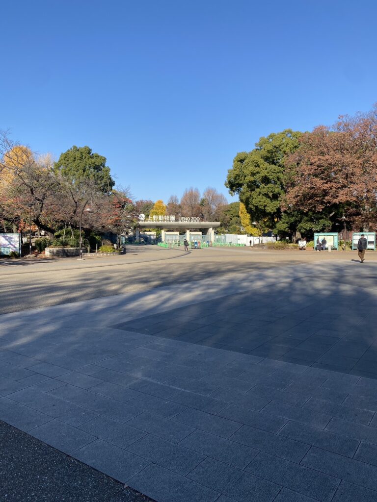 上野動物園の表門前は、広くて空が大きく見えるスポットです。